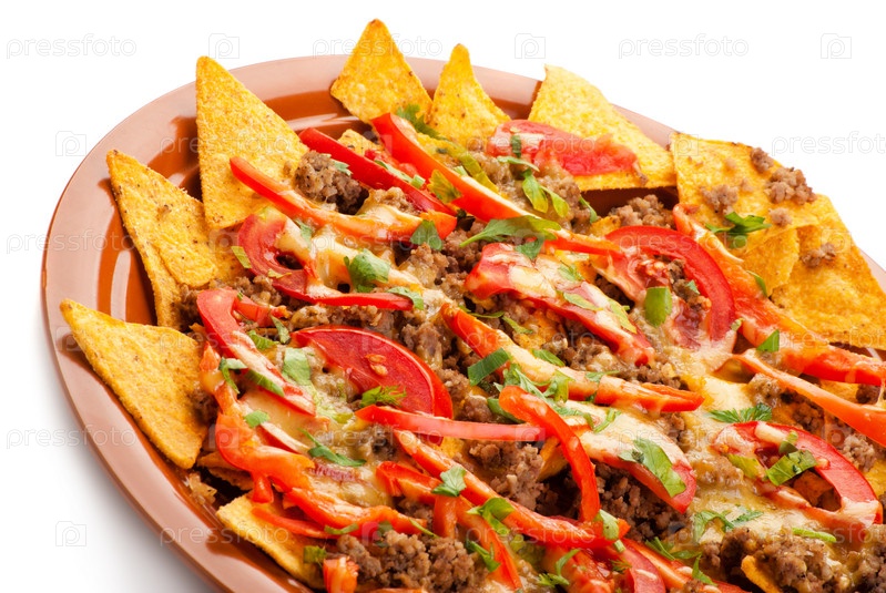 Пряный начос с свининой, помидорами и перцем