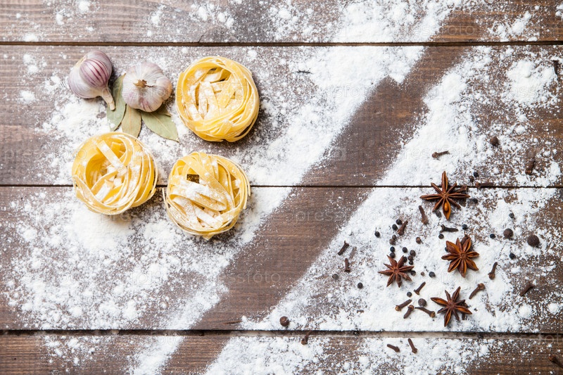 Скалка с мукой и макаронными изделиями