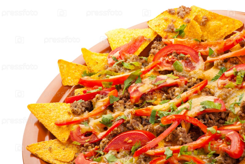 Пряный начос со свининой, помидорами и перцем