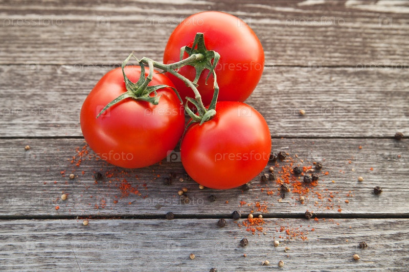 Красные помидорв с перцем на старой древесине