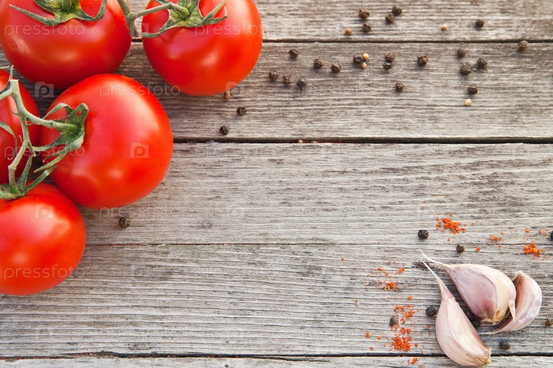 Красные помидорв с перцем на старой древесине