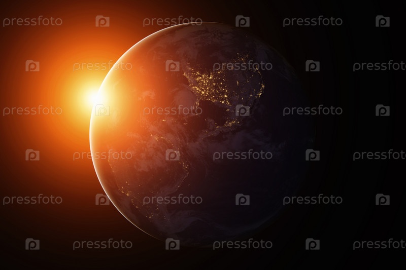Земля из космоса в ночное время. Северная и Южная Америка