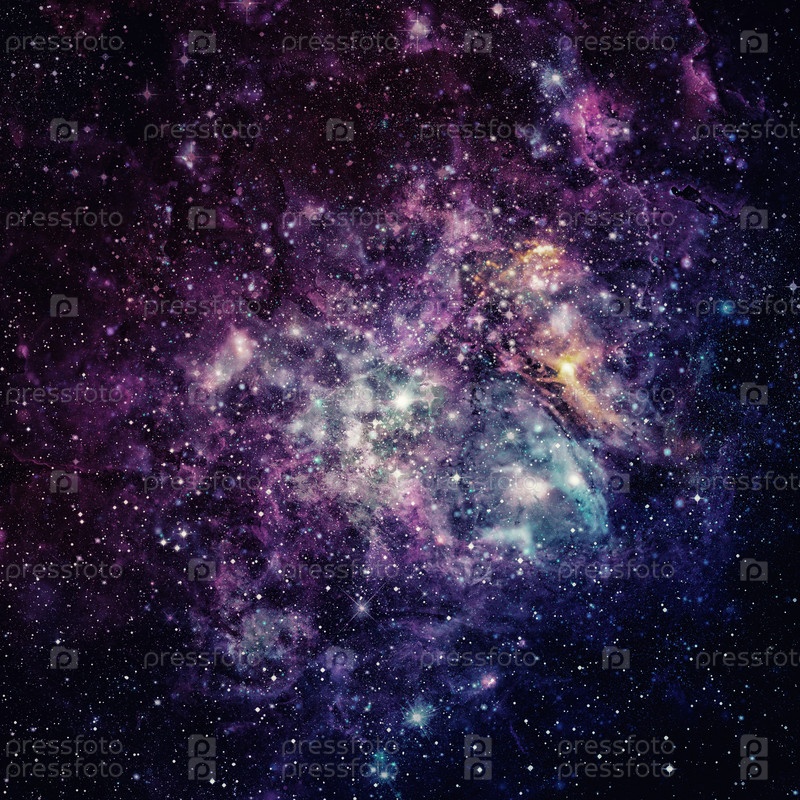Красивая туманность, звезды и галактики