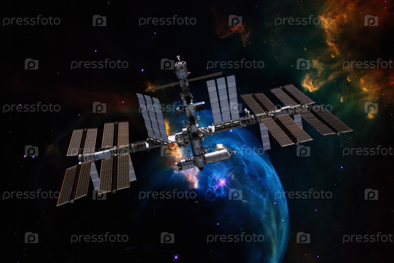 Международная космическая станция над туманностью