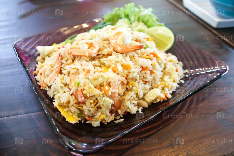 Жареный рис с креветками