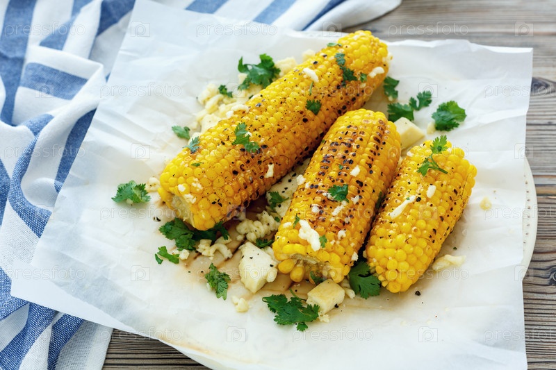 Сладкая кукуруза на гриле с сыром и кинзой