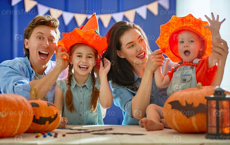 Семья готовится к Хэллоуину