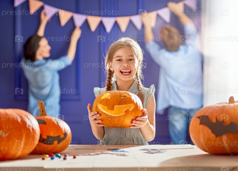 Семья готовится к Хэллоуину
