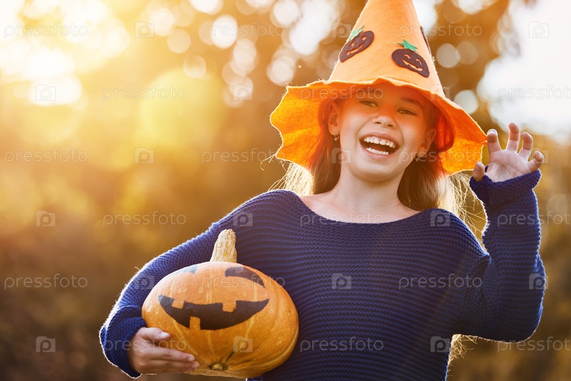 Ребенок играет с тыквой
