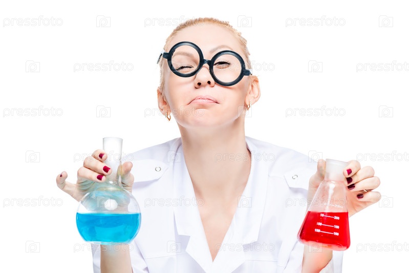 Неудачный химик в смешных очках с пробирками