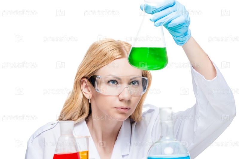 Сконцентрированный химик с пробирками