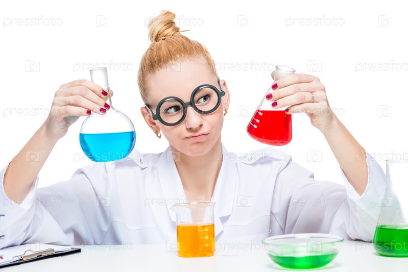 Сумасшедший химик с пробирками в руках