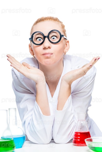 Смешной лаборант в белом халате
