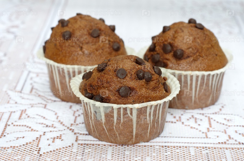 Маффины с шоколадом в бумажных формочках на столе