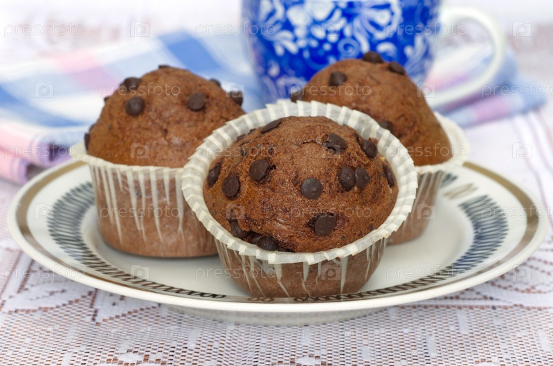 Маффины с шоколадом на тарелке