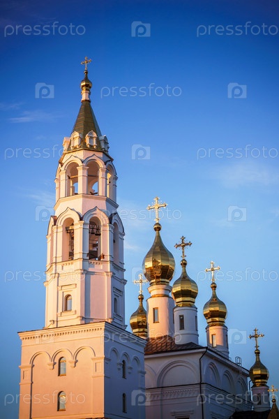 Православная церковь на закате весной
