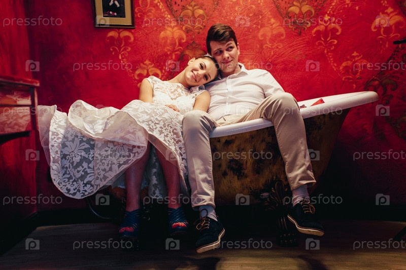Молодая пара в старой ванне