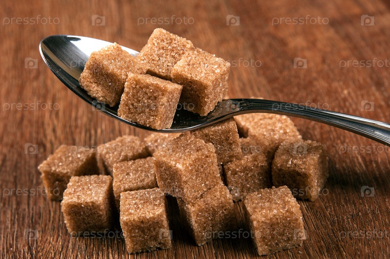 Столовая ложка с кубиками коричневого сахара