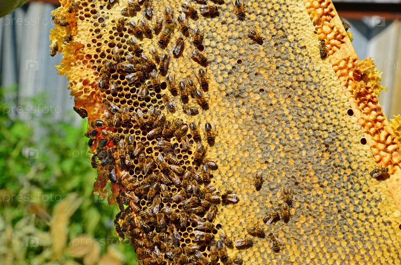 Медоносные пчелы на сотах
