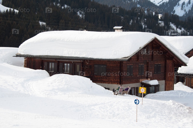 Небольшие деревянные хижины, покрытые снегом в горах Монтафон, Австрия