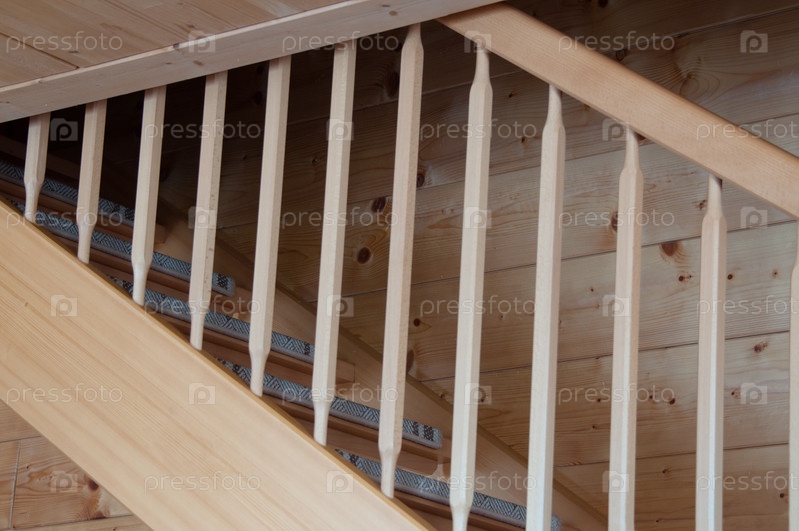 Деталь деревянной лестницы, потолка и стены