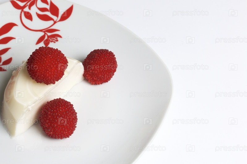 Белое желе, украшенное малиной