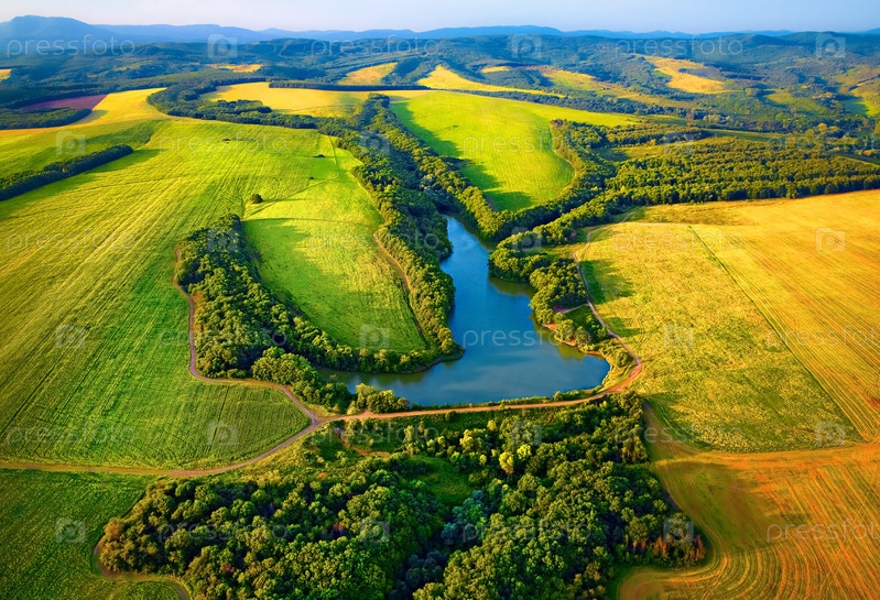 Аэрофотосъемка полей с озером в Краснодаре