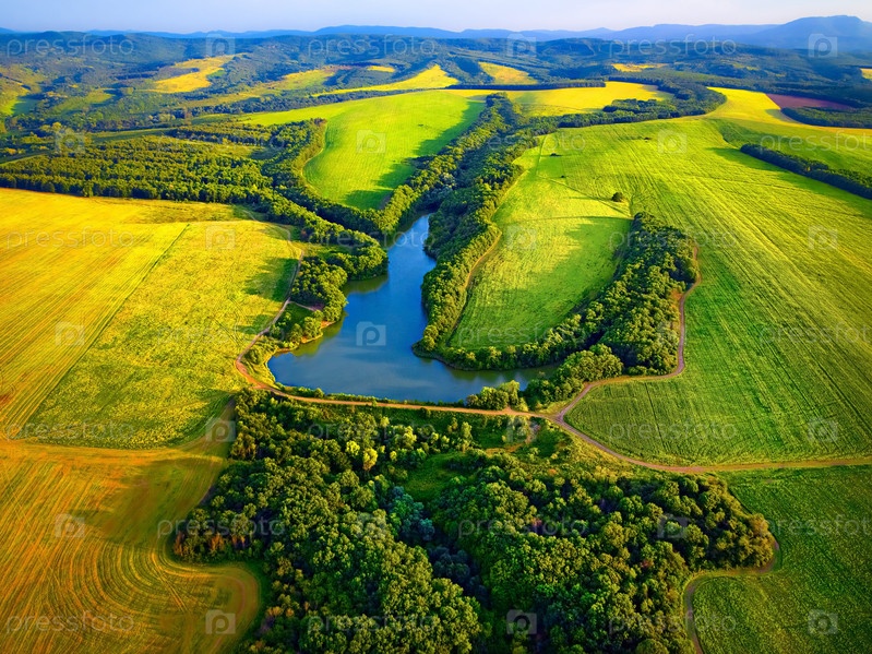 Аэрофотосъемка полей с озером в Краснодаре