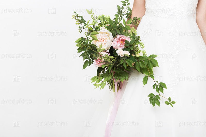 Молодая красивая невеста со свадебным букетом