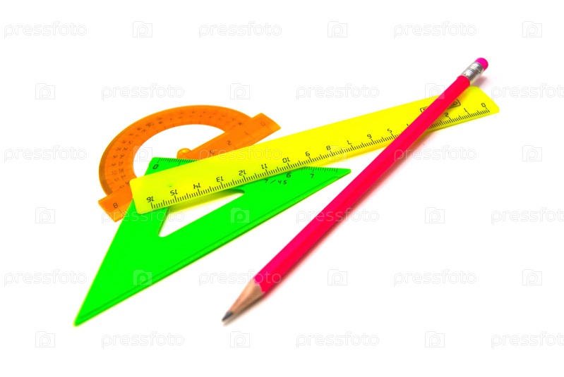 Карандаш и линейки крупным планом на белом фоне