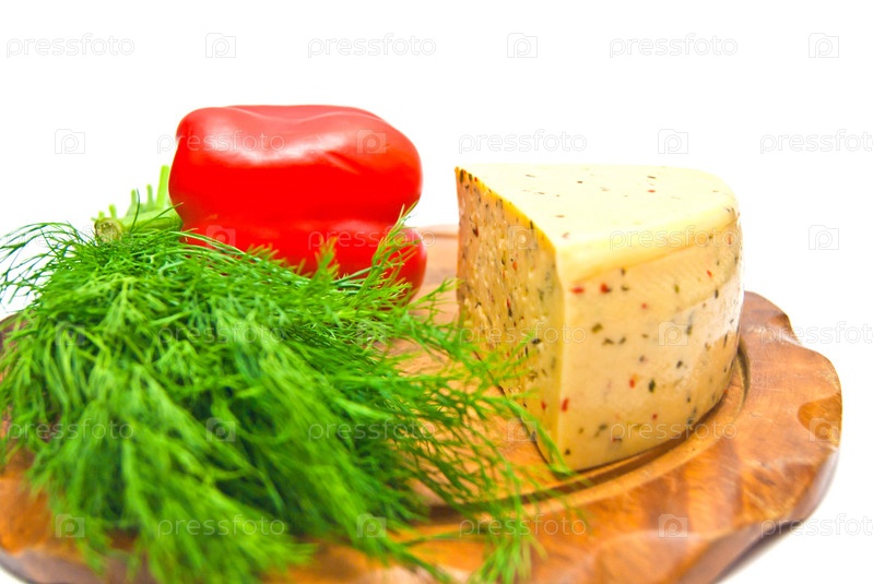 Болгарский перец, укроп и сыр с паприкой крупным планом на белом фоне