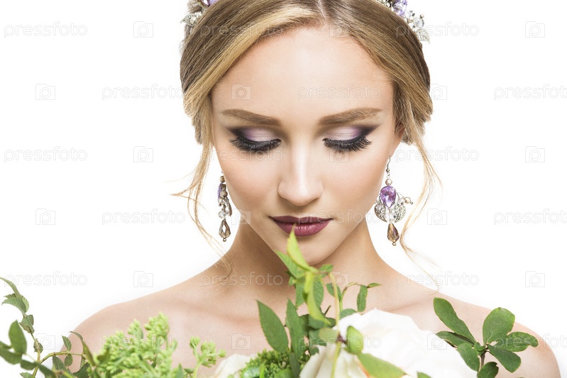 Молодая красивая невеста со свадебным букетом