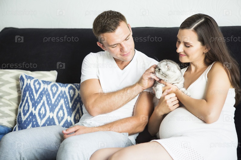 Молодая семья с кошкой