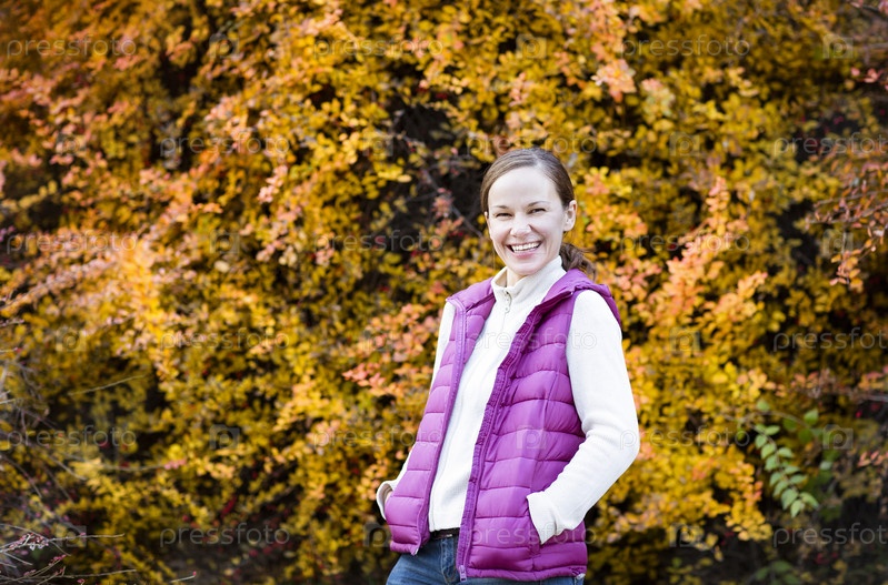 Смеющаяся женщина в осеннем лесу
