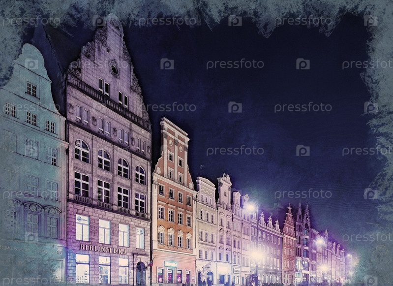Рыночная площадь в Вроцлаве в ночное время