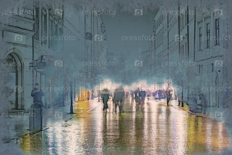 Ночная улица в Кракове, Польша