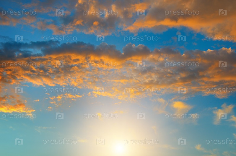Красивый восход солнца и облачное небо