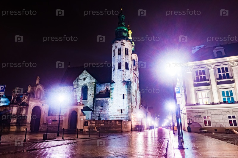 Ночная улица в Кракове, Польша