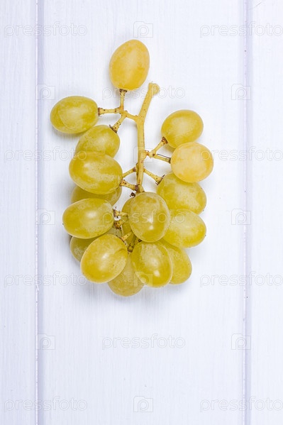 Белый виноград на белой деревянной поверхности