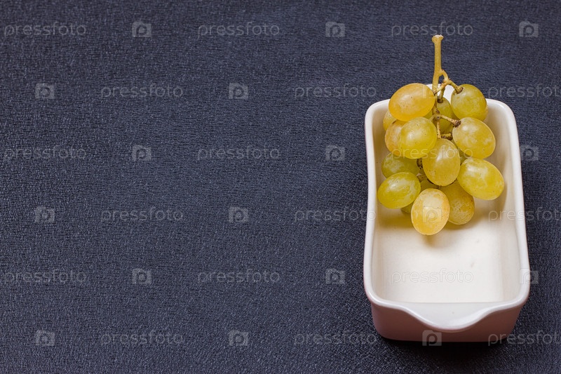 Белый виноград в миске на черном фоне