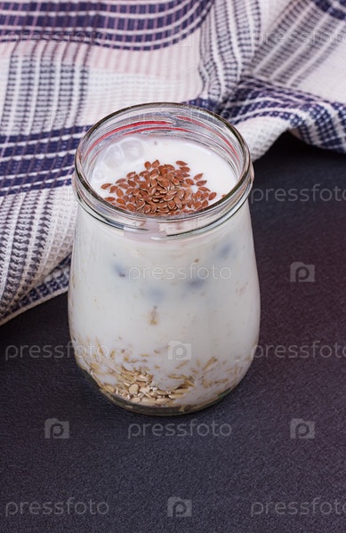 Здоровый завтрак - йогурт с черникой и мюсли