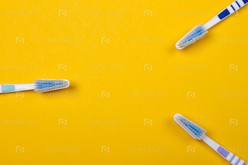 Зубные щетки на желтом фоне
