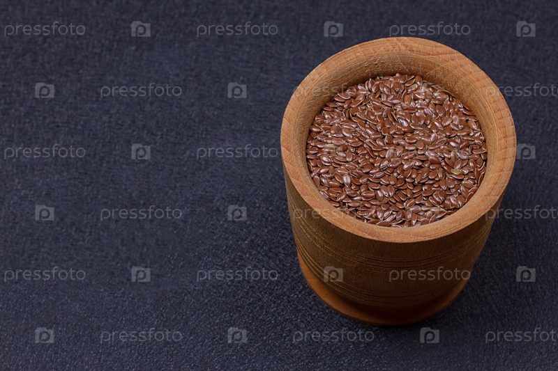 Льняное семя в деревянной миске