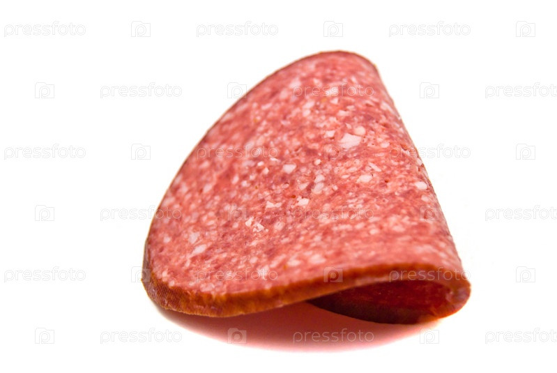 Кусочек колбасы на белом фоне