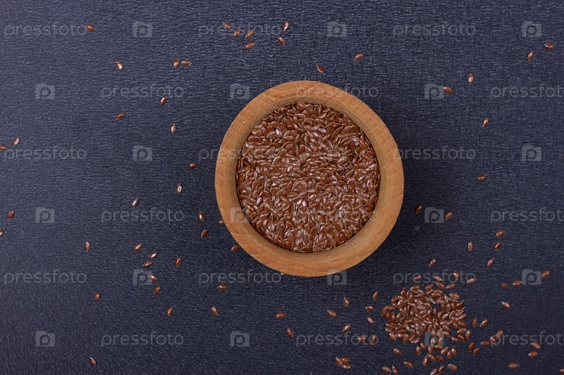 Льняное семя в деревянной миске