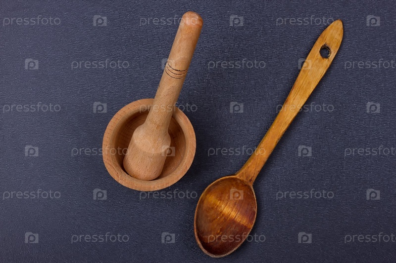 Деревянные ступка и ложка