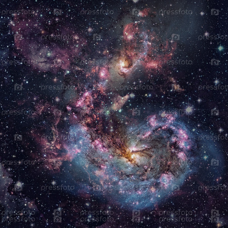 Красивая туманность, звезды и галактики