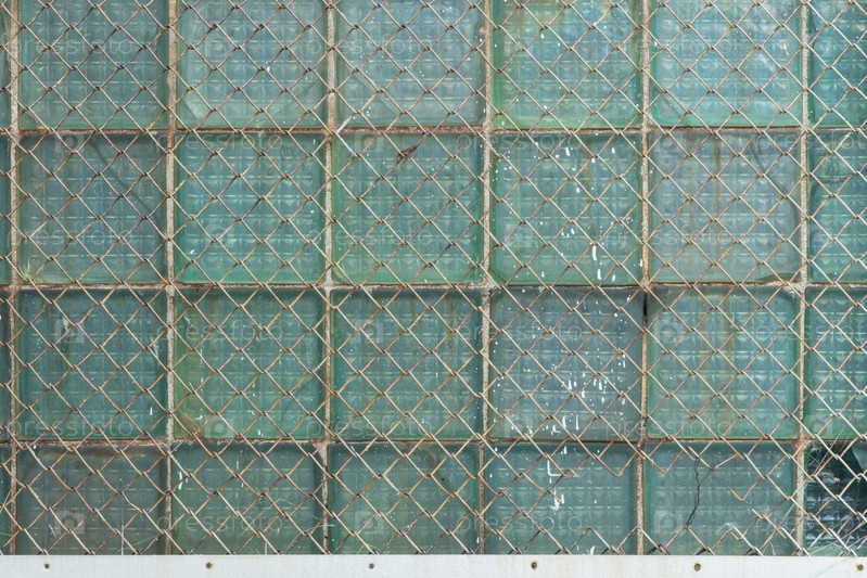 Фон из металлической сетки и стеклоблоков