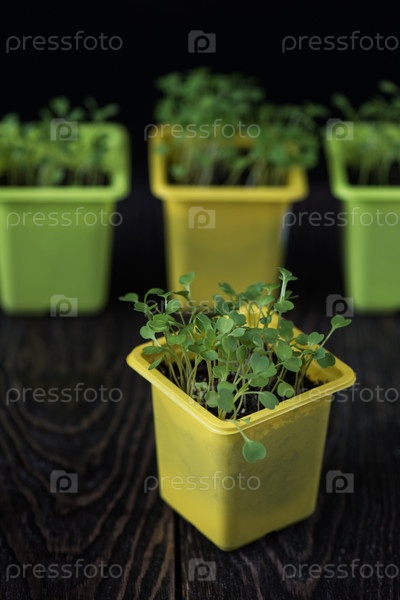 Руккола растет в горшке