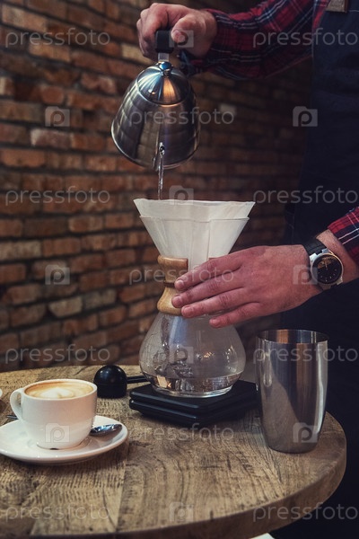 Бариста заваривает кофе